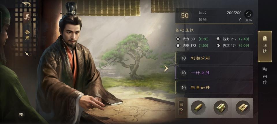 鲁肃为人处世讲究和气生财,放眼孙吴集团的四大都督,他最大的与众不同,就是唯一一个没有在明面上跟蜀汉盟友剑拔弩张甚至直接起冲突的都督。正是因为如此特性,鲁肃在三国谋定天下里才被匹配了缴械神技划湘分荆,从而坐实了他在游戏中“缴械一哥”的别称。