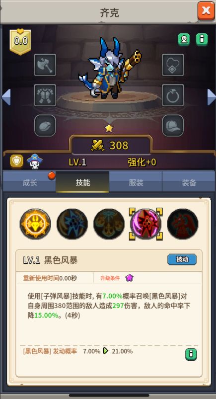 - 技能效果:使用[子弹风暴]技能时,有7.00%概率召唤[黑色风暴],对自身周围380范围内的敌人造成297点伤害,并降低敌人命中率15.00%(持续4秒)。