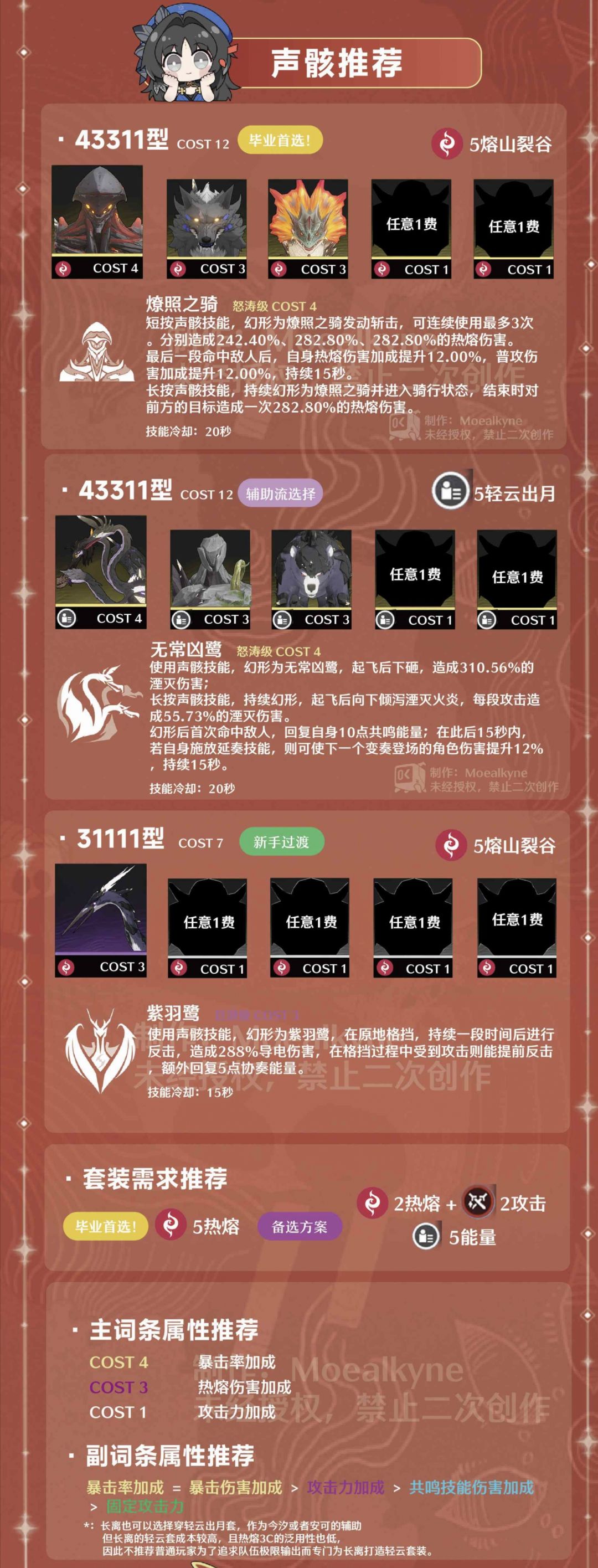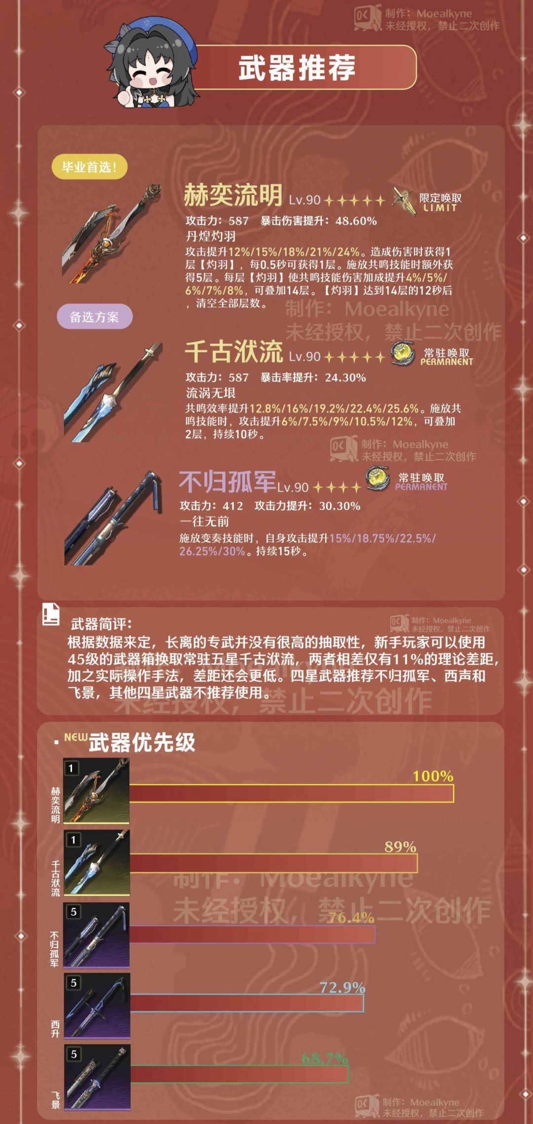 各位漂泊者早上中午晚上好呀,这里是一小时极限作图的Moealkyne,各位久等啦!本次给大家带来的是「长离」角色一图流攻略~