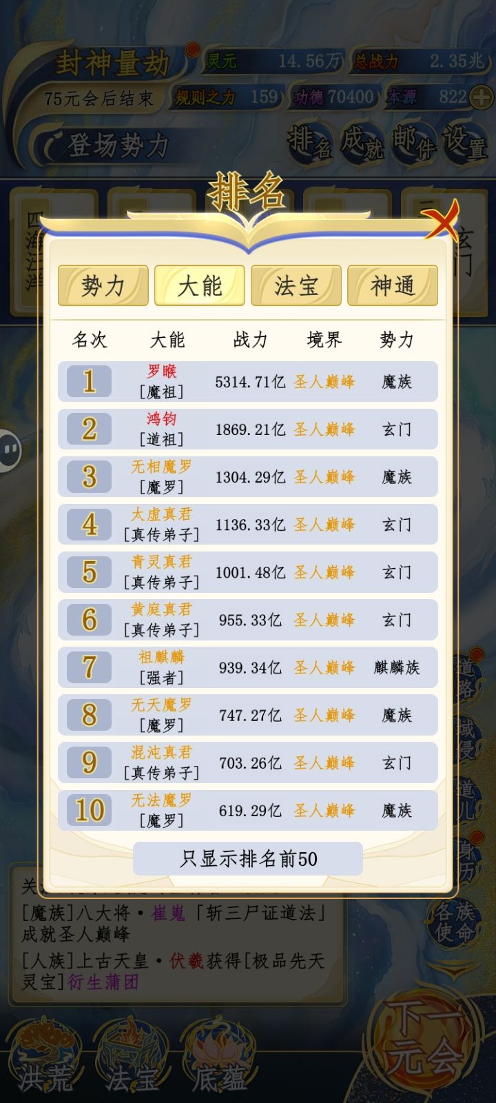 玄门和魔族直接霸榜
