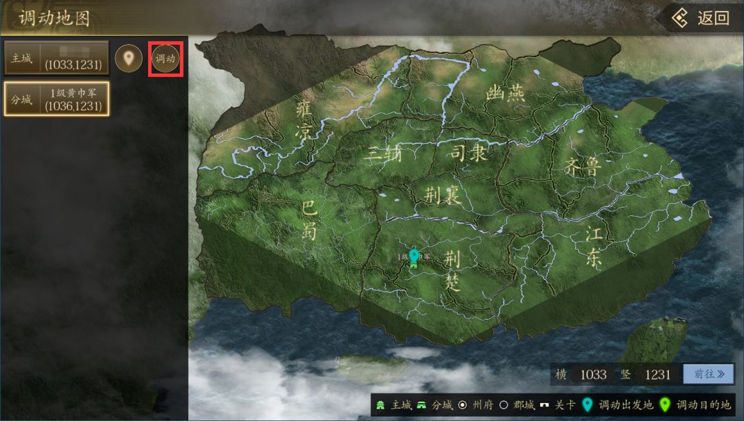 1、招好低级兵种后,打开调动地图,选择向主城调动。(红框的位置)