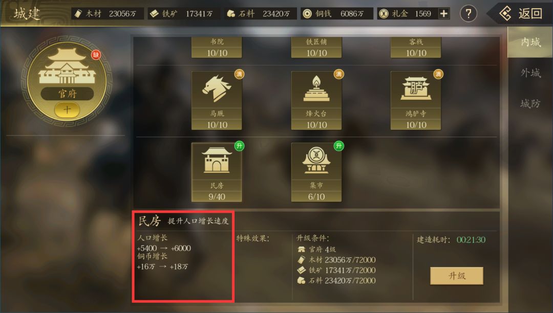 1、提升城建中的民房等级,可以大幅度提高人口增长的速度。