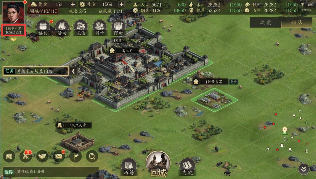 1、根据自身实力选择一座等级合适的城池进行攻打。