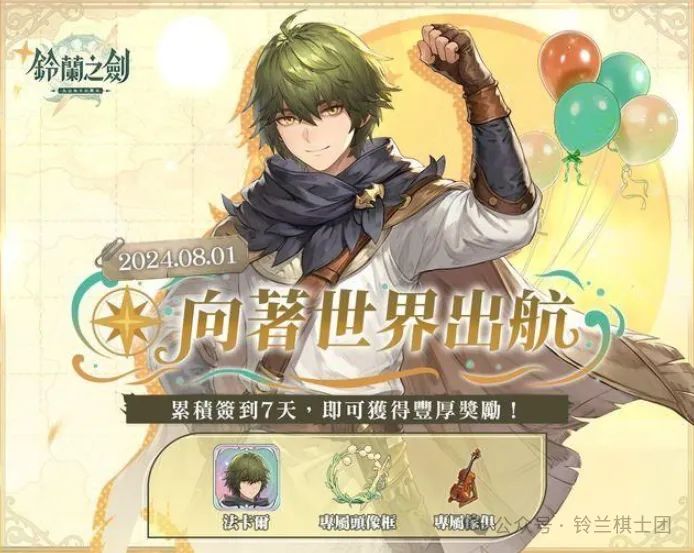 铃兰之剑8月1日将全球上线,届时全球玩家都可以玩到铃兰之剑了,同期也将有特别7日签到活动开启,奖励包括传说角色法卡尔、专属头像、专属家具等奖励。