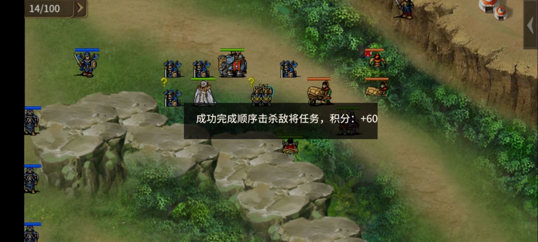 注意事项:1.撤退点在右上角;2.反击击杀敌军2分/人;3.天师九宫回复状态无法禁咒反击击杀(提示:可以将7.15和7.17的天师谎骗走或者击杀,则禁咒有效);4.孟获在右上角,且原力20%,张飞3回合内击杀(跳转的当前回合不算,在当前回合基础上增加3回合为完成任务最后回合)。