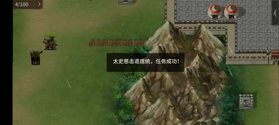 注意事项:1.撤退点在正下方;2.庞统在中间,自带不屈+原力20%;3.太史3回合内击杀。
