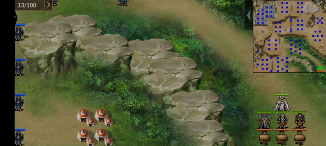 左下角、左上角和右上角三个地方的人员继续赶路,顺便清理剩余敌军,图1留守人员配合提供辅助,到撤退点直接撤退,诸葛提前给自己加激励,徐庶提前放无双500固伤技能。