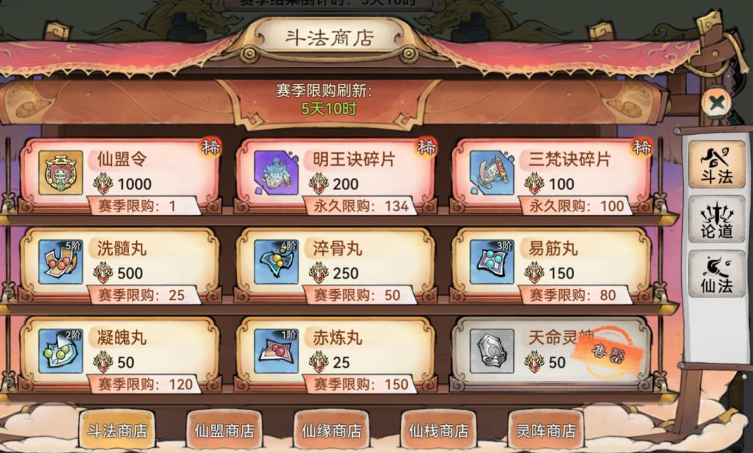 2.斗法商店当属50/个的天命灵魄最为划算(150兑换上限/赛季),一定是全部拿下。赛季排名结算也会给荣誉点以及额外的挑战令牌,因此无需担心换不完,到第二期往后只要每天打完免费次数,基本是年年有余。