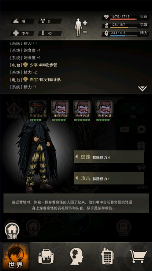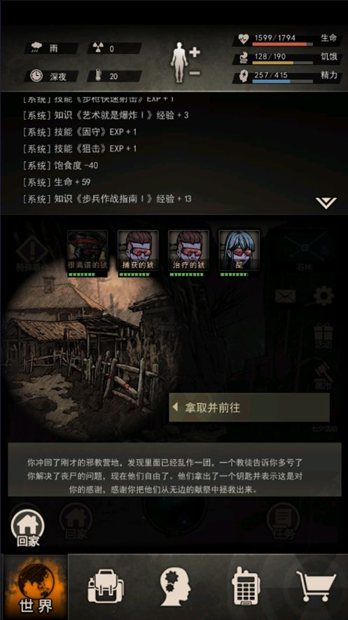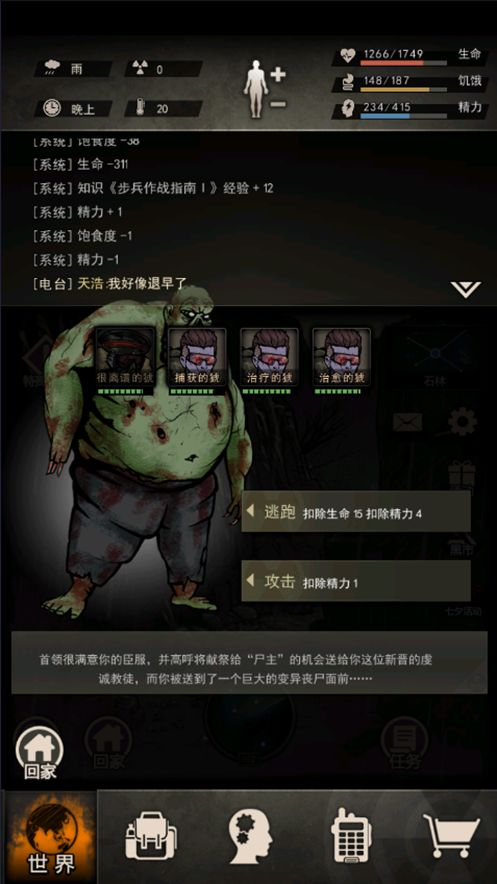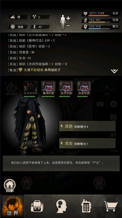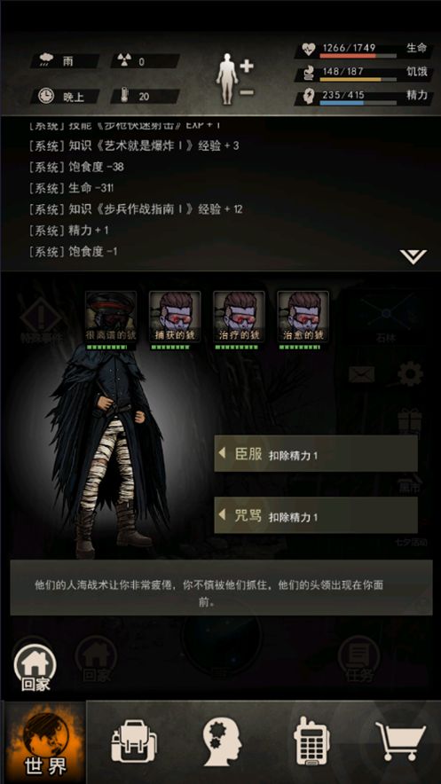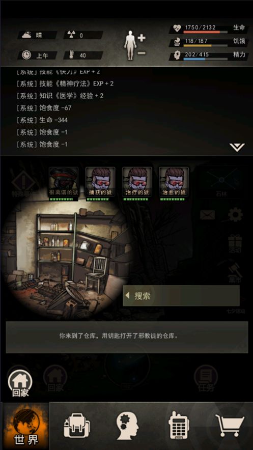 再搜索,获得:肉40,皮革10,烟2