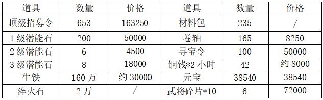 备注:部分道具价格不详,暂作为赠品不计入总数。