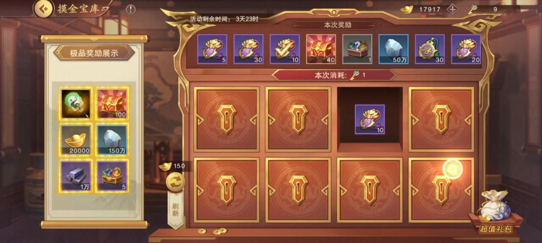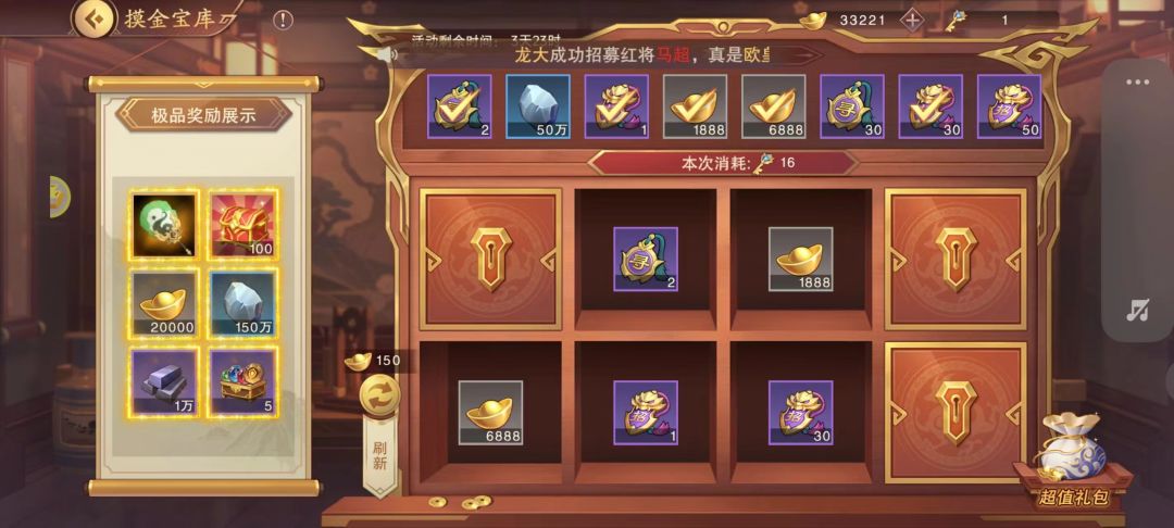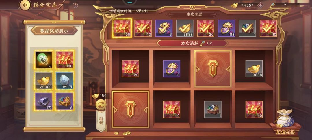 3.3充值党(充值328元或648元):不管哪一种选择,刷新出2种极品奖励是必须的,当刷新出心仪的2种极品奖励后即可选择充值328或648元。