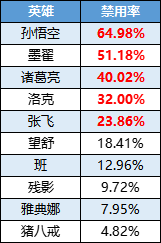 【禁用率前五】孙悟空、墨翟、诸葛亮、洛克、张飞