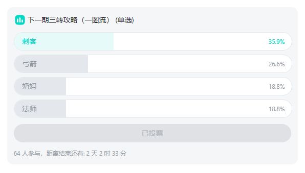 各位小伙伴觉得还行点点赞,在最下面投票,票出最多的职业,明天给你出3转攻略~