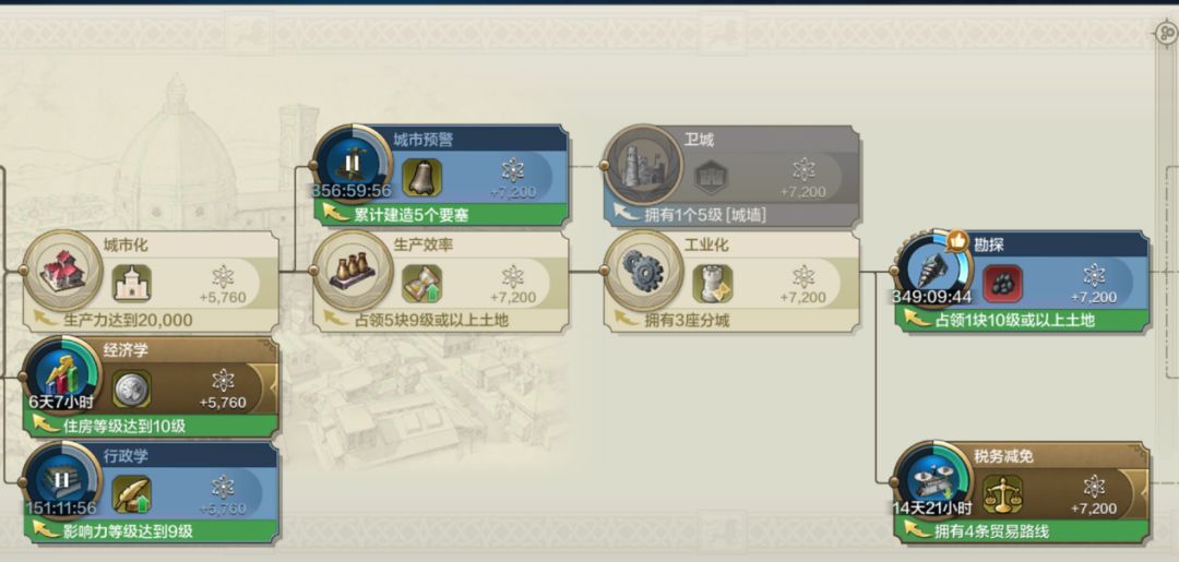 当第二个分城走完之后,马上走到工业时代科技链时,我们需要注意如何凑满10万科技积分,这样才能进入到工业时代。