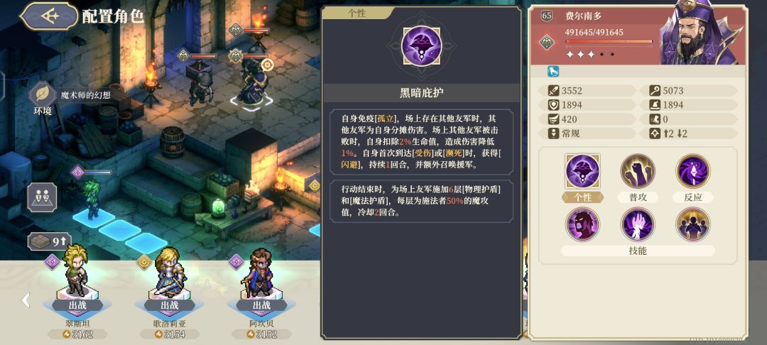 ,最近几天刚好在凹分,顺便把近期心得跟大家分享一下,本期逆境来说,个人觉得还是比较难受的,唯一令人头疼的还是下半区对于护盾的处理上(没办法,驱散护盾的角色翠斯坦是第一优先,奥古这期下不来,不然奥古的驱散应该也够)个性黑暗庇护存在其他友军时,会为其分摊伤害,其他友军被击败时会扣除2%的生命值,降低造成的伤害1%,重点是首次受伤或濒死,会获得闪避一回合并召唤额外援军,行动结束时会为场上友军施加六层物理魔法护盾,这里个性注意boss的血线,如果走单体要规避boss的闪避