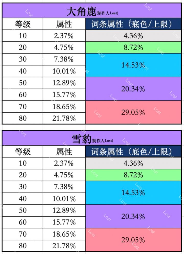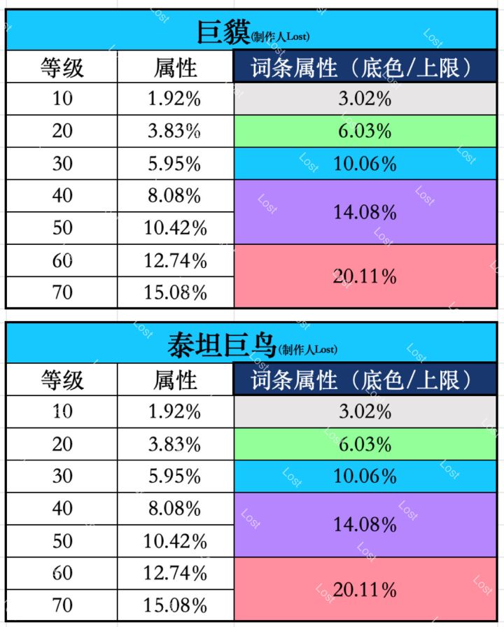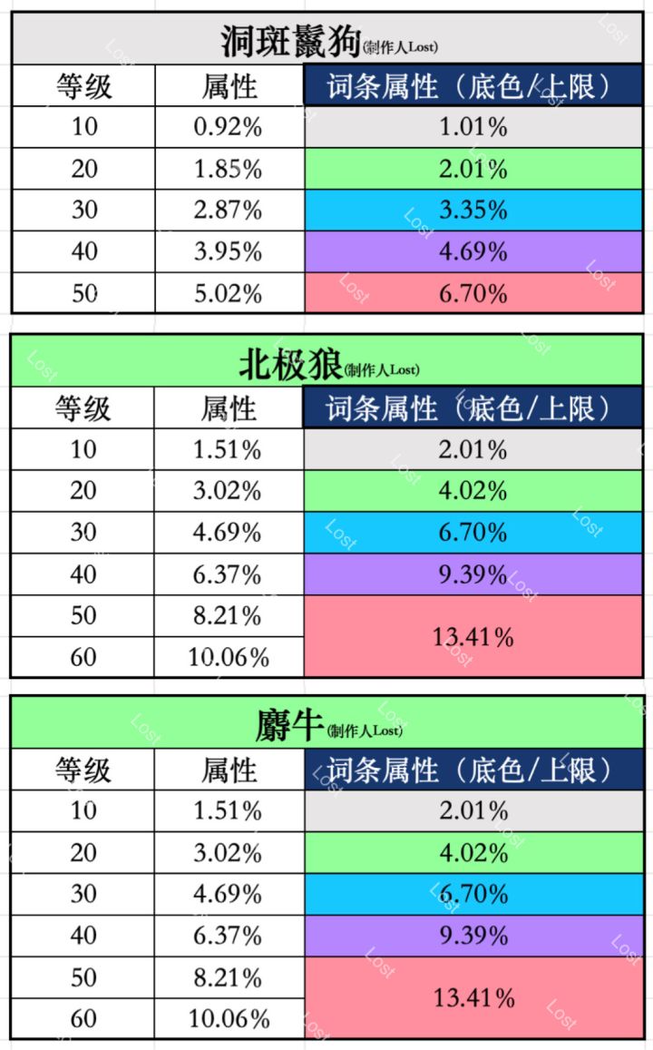 1~3代宠物等级属性及各洗练底色属性整理