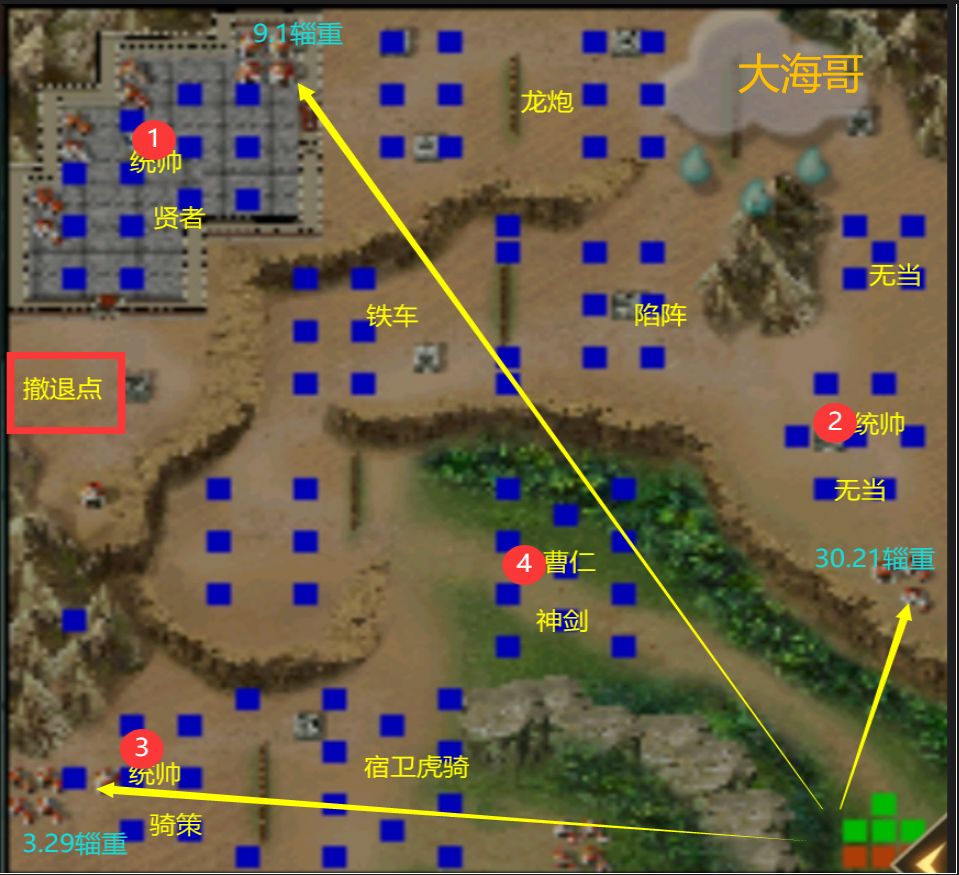 两人调令留着下回合进撤退点用左测白马有复活杀的慢的,