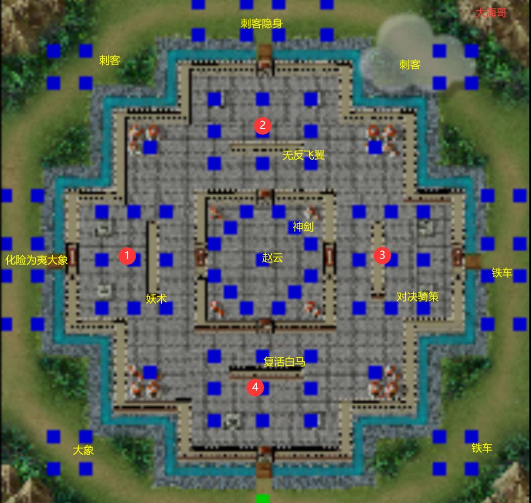 首回合:可以清完下面飞熊+飞翼,右下角战场,左侧天师、部分无当、刺客