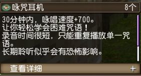 +800咏速,-4%魔攻,持续5分钟,西科亚深谷的葡萄果冻掉落,达成1000咏速,让分身射手与勇气泉源的咏唱时间减半