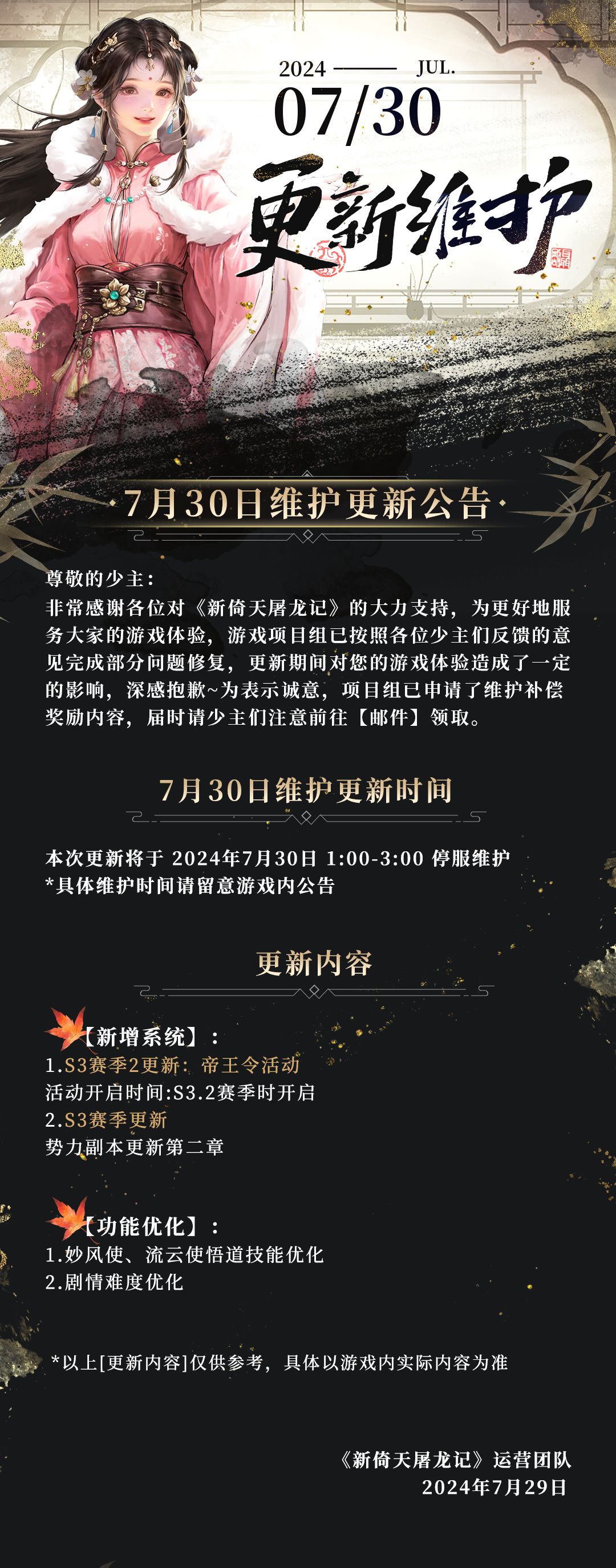 7月30日维护更新公告