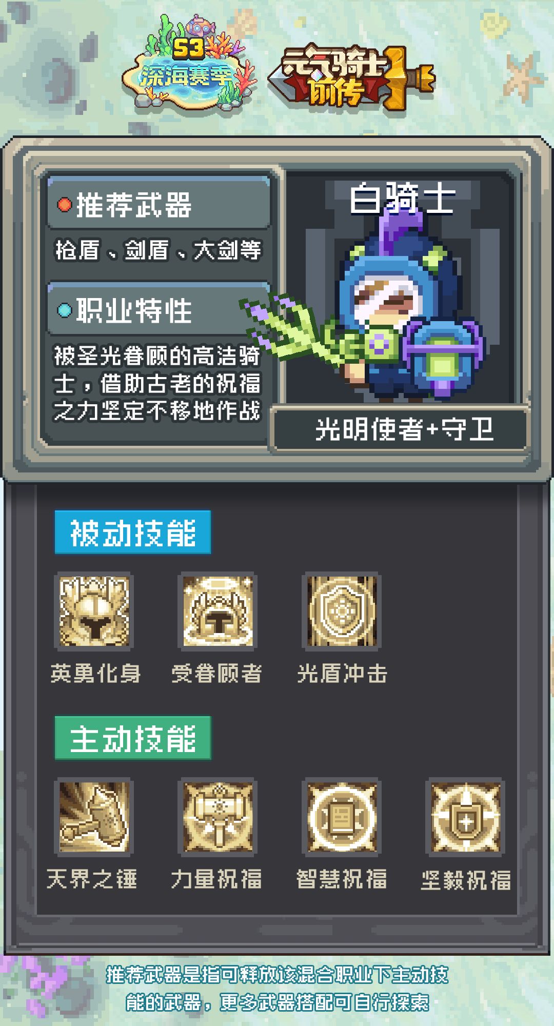 上期的混合职业介绍仿佛还是上期,本期将要介绍攻守兼备、圣光眷顾的白骑士,作为S3深海赛季压轴登场之二的混合职业,白骑士将在2024年8月1日同大家见面!
