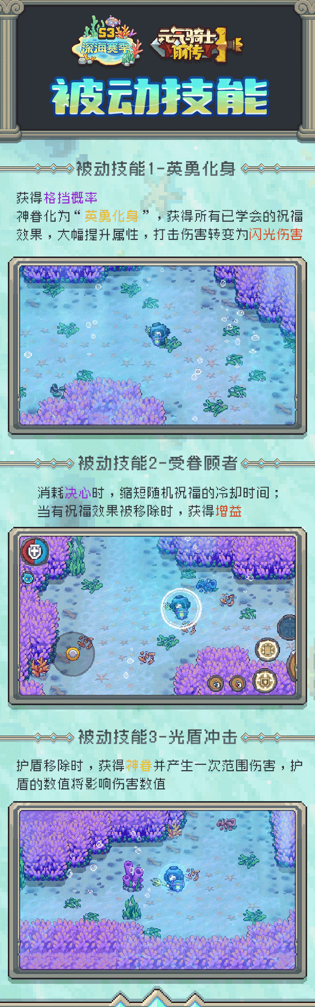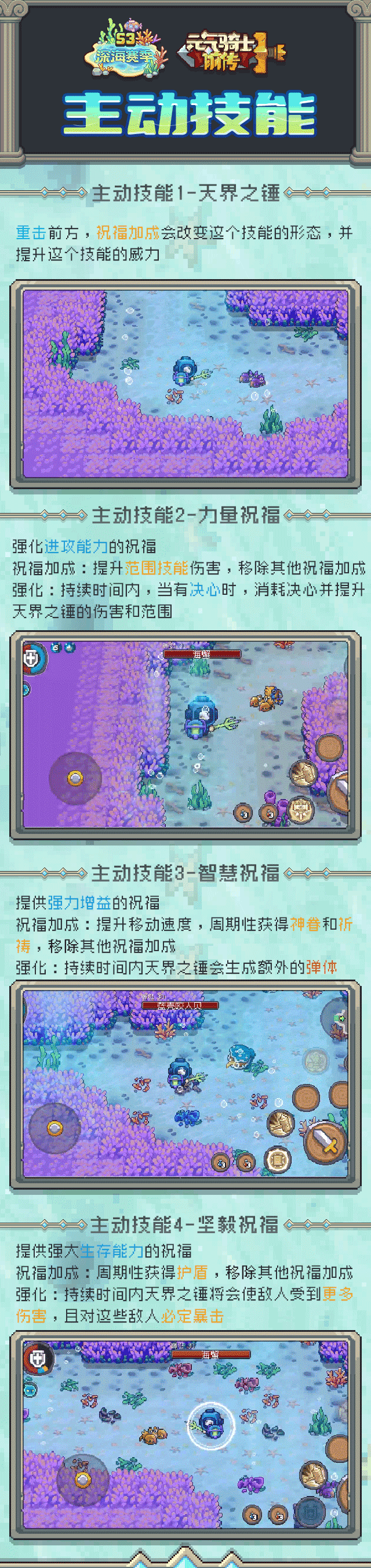 被动技能【受眷顾者】引申出特殊的强化机制:祝福,小骑士请下翻查看后文的主动技能介绍哦~