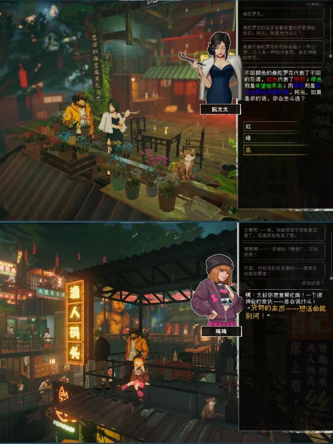 💿游戏发生在在战后分裂的暗水城,你将扮演警探阿光,调查推理各种匪夷所思的案件。