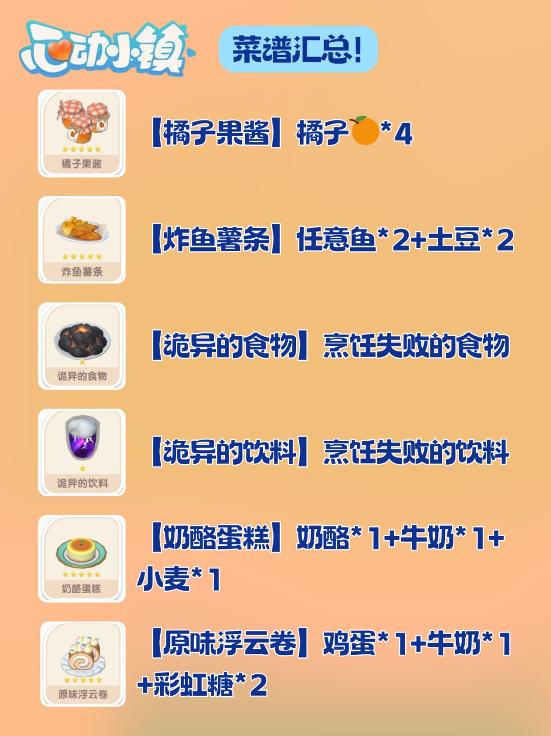心动小镇菜谱来啦。