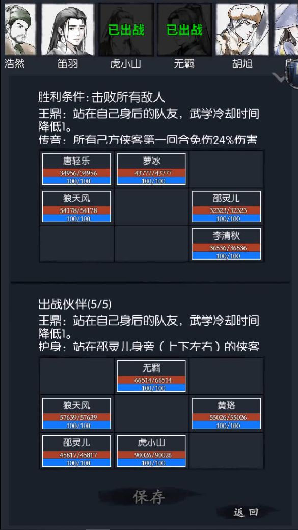 这边应对李清秋笛羽宵浩然何恨惕海棠,李清秋的冰封依旧是应对武学的最好人选,何恨惕压血配合宵浩然和笛羽砍完。