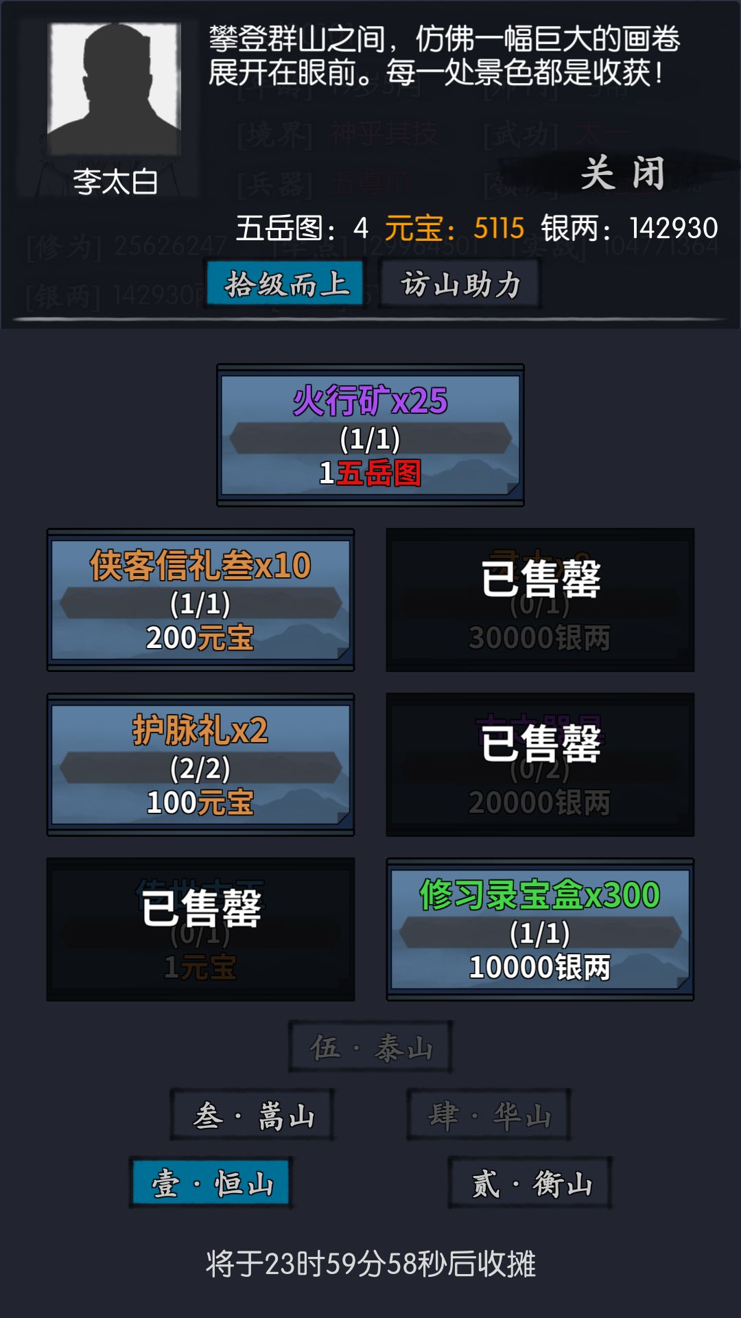 总体来说还是个非常划算的活动只要有元宝每天买2个元宝就能买到的礼包即可走完三山五岳