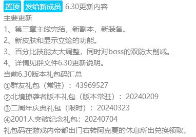 首先是礼包码,以当前(2024.7.29日)最新的A6.30版本为准,共可使用4个直送礼包。