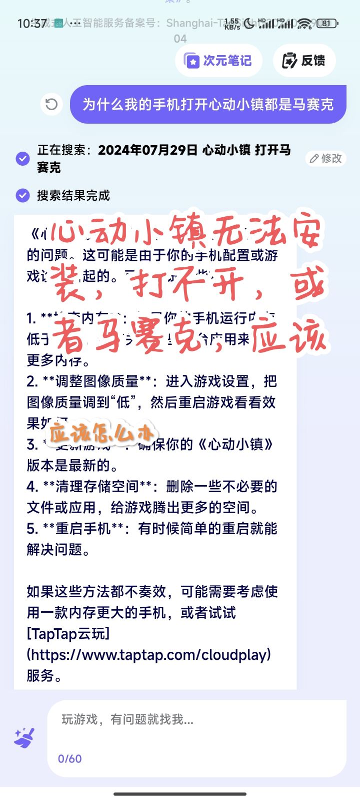 心动小镇安装失败或者马赛克