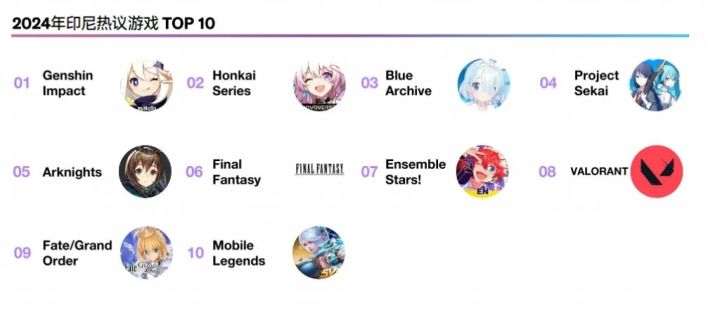 白皮书展示的“2024年X全球游戏热榜TOP10”中,仍有六款二次元游戏、以及7款IP产品。其中,米哈游《原神》荣登全球榜单第一,并在美国、日本、沙特、印尼、巴西、英国等区域榜单登顶,韩国位列第三。#今天游戏圈发生了啥