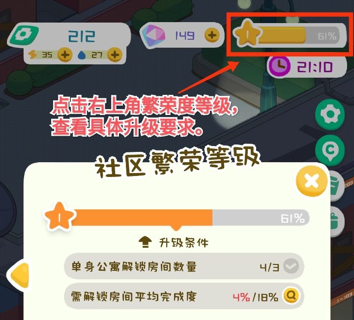 #房东模拟器 新玩家刚进入游戏,升级要求是什么?请看下图: