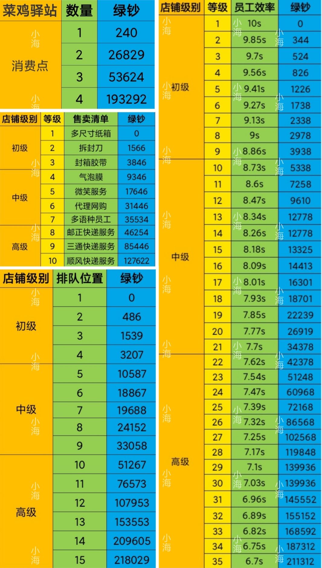 租客去取快递,快递驿站也需要升级服务项目,具体升级所需绿钞请看下图: