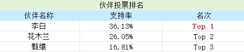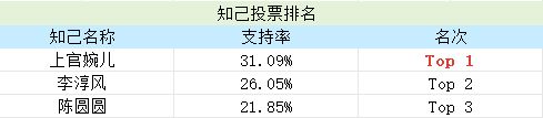 另外咱们的伙伴&知己的投票排名也出来啦~郡主们看看是不是自己支持的那个ta呢?