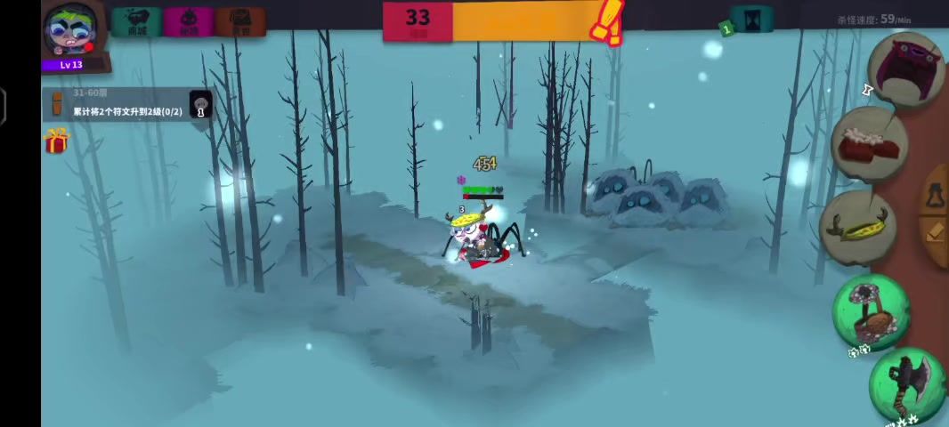 接下来31层或者41层后就把武器换成“投掷斧”,天赋把【远程护盾】点出来,后面基本就是靠它怒怼boss。