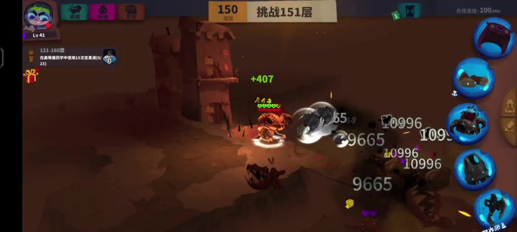紧接着【120~150层】,因为闪避天赋+远程护盾天赋,全程基本上是站撸。