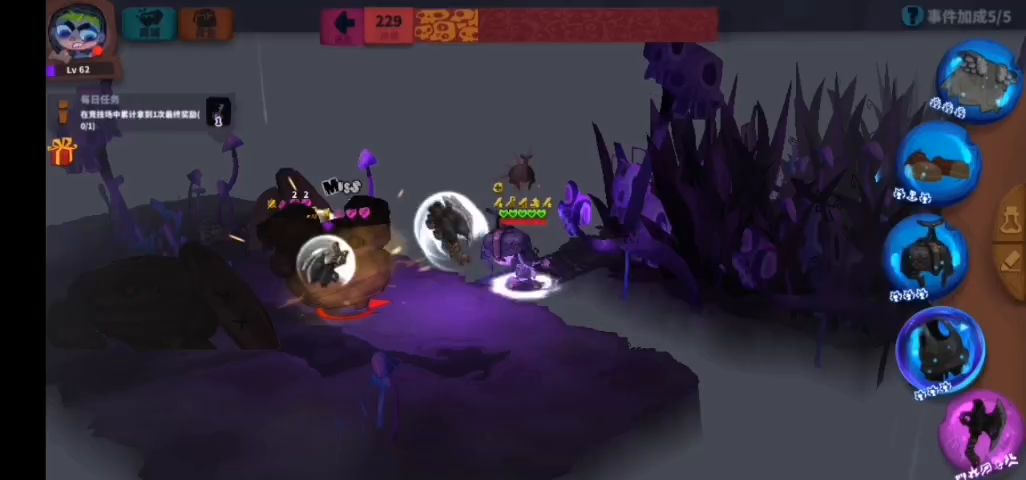 2、有个长相类似“乌鸦”的boss,人物打它会减少人物的命中,造成无法击中,一直是MISS,所以出现miss时就走位,等角色头上的紫色小图标(debuff)消失后再打,反复操作磨。