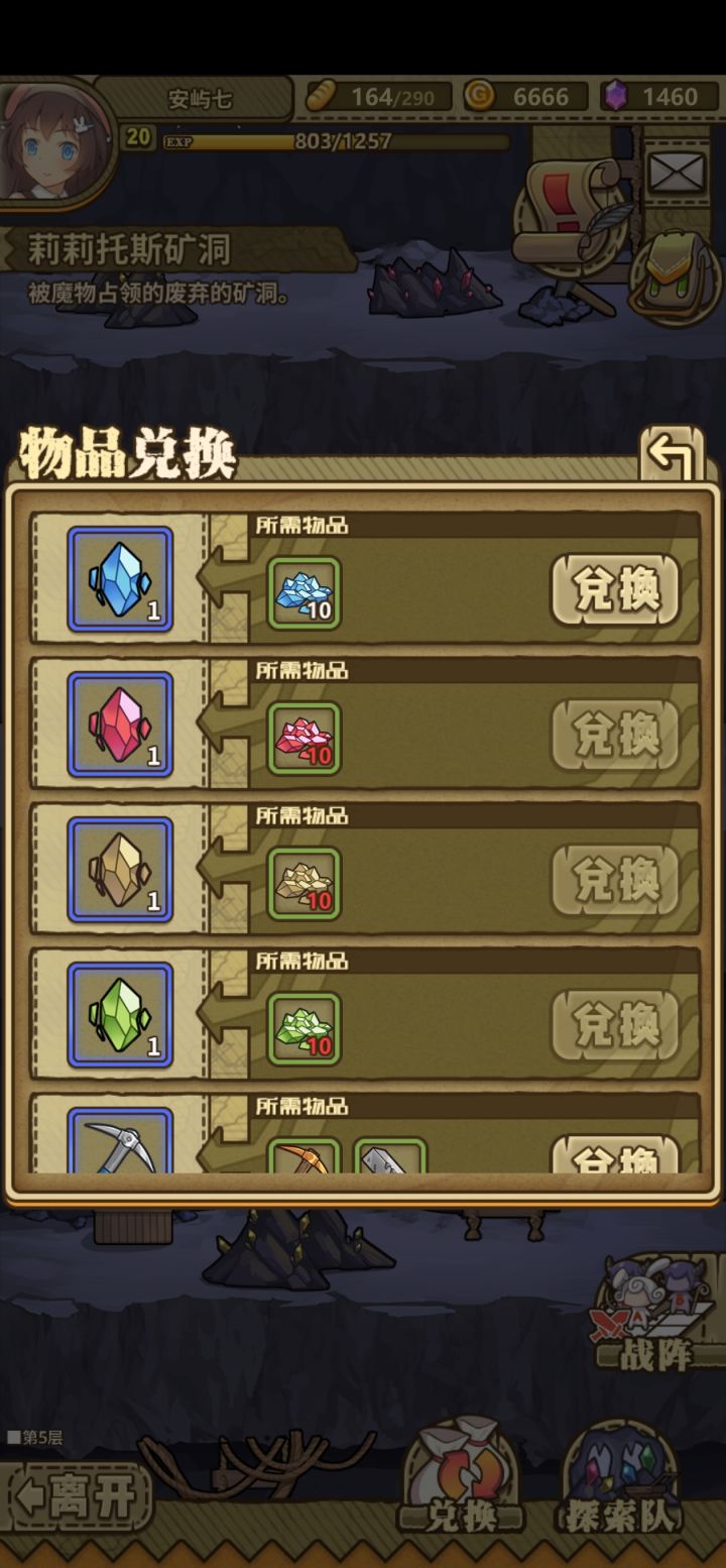 萌新刚玩几天,潜能突破需要用到水之结晶了。矿洞开到了5层要用铁镐了,但是背包里铁镐就那么几个。用碎片换结晶的话要10个才能换一个。