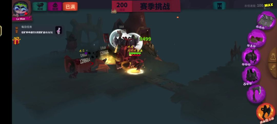 第三波中途碰到鼹鼠boss差点嘎了,后面把投射物减少,投射物射程增加,重复碰到鼹鼠boss时简直不要太轻松。