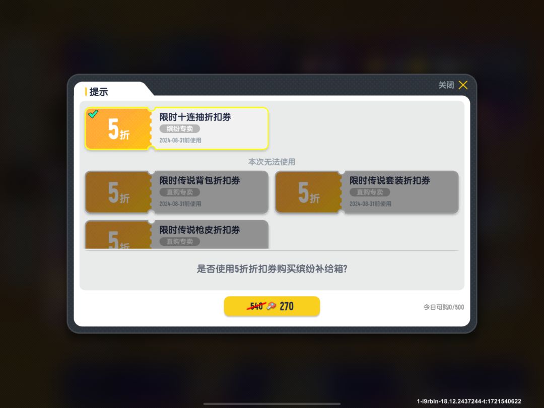 缤纷折扣劵10连抽: 维克托猛虎祥云+龙舞影随飞高高(第五集:国色潮魂缤纷补给箱)