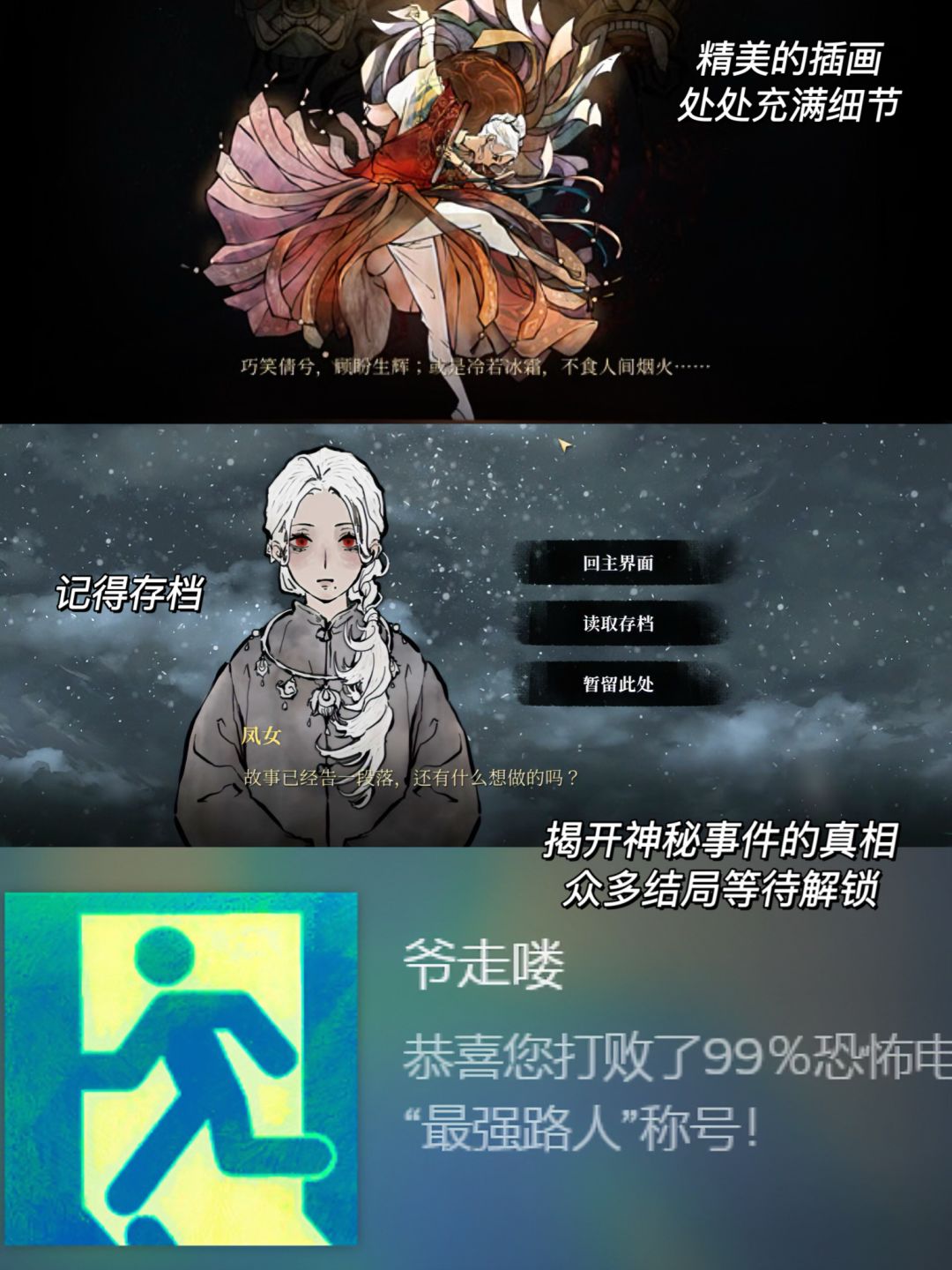 游戏的画风很精美 恐怖氛围刻画到位了🥲详细的剧本故事 以及有趣的破案过程 可以解锁🔓不同结局哦