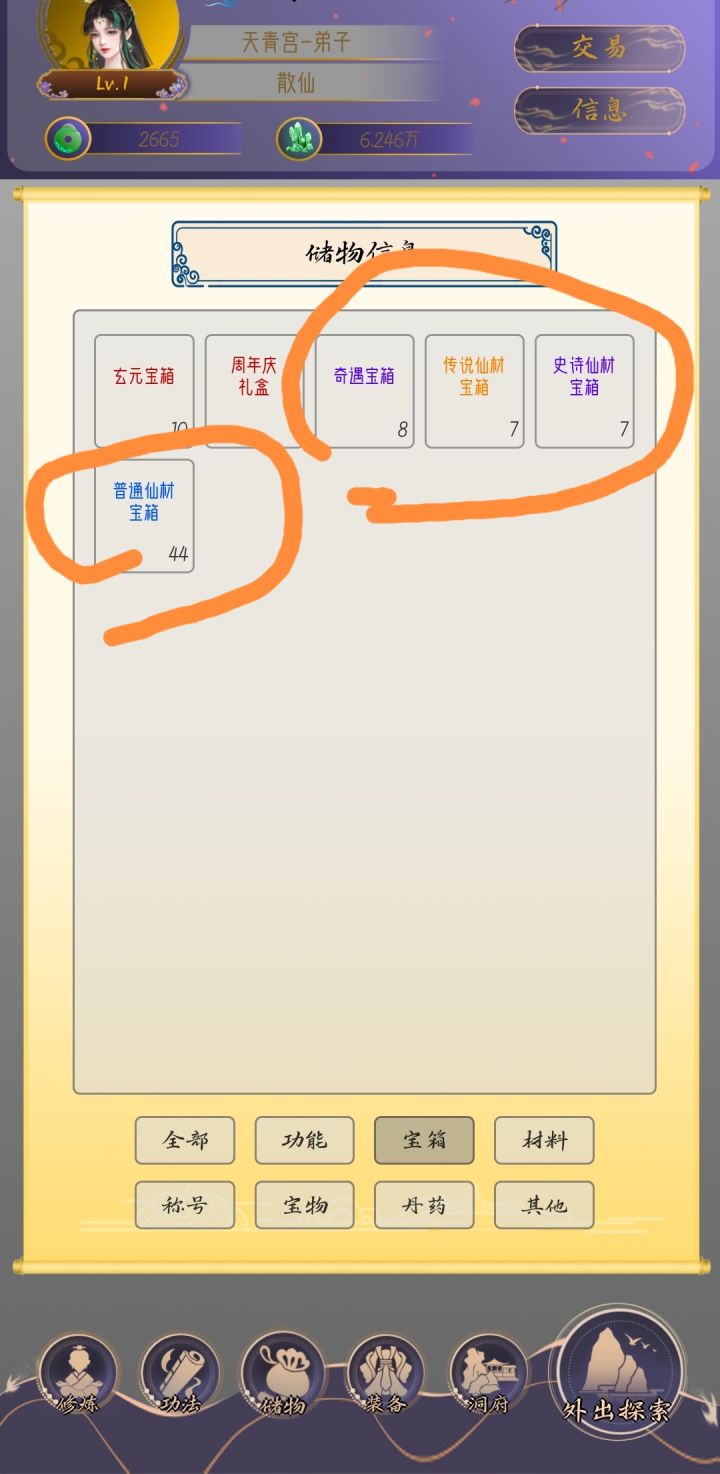 仙材宝箱也可以开出晶石和药材,功法秘卷了