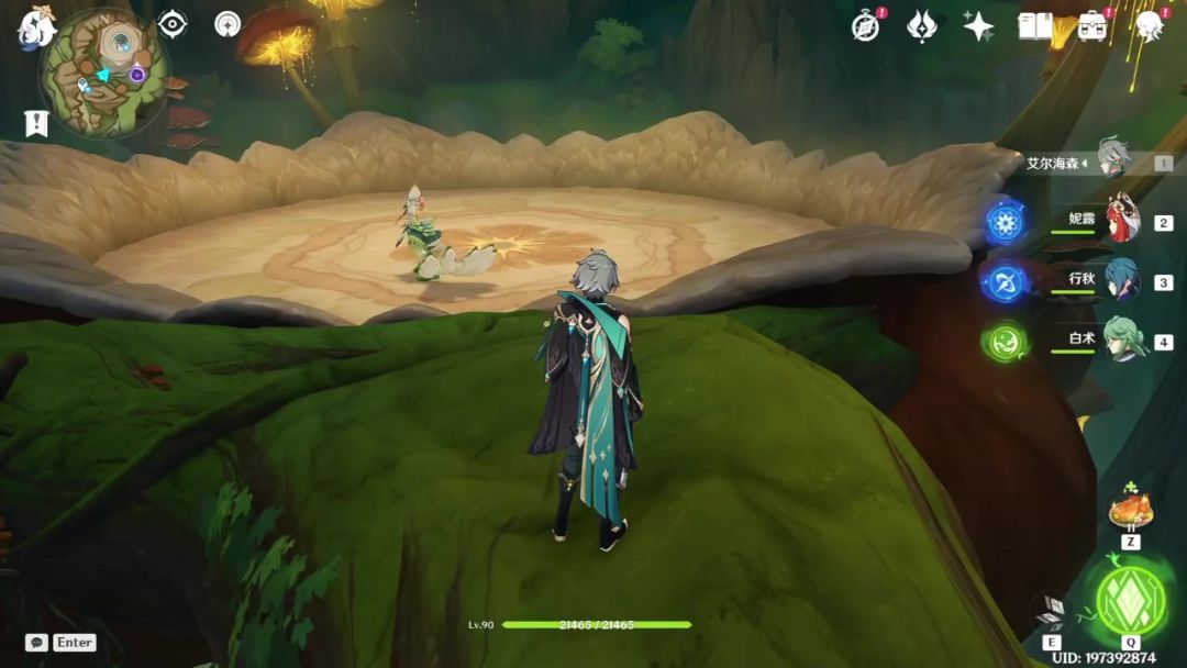 妮绽中另一个非常重要的进阶思路则是“对群混底”,即利用角色特殊的附着和怪物的站位,使得群怪中保持既有水底又有草底,此时无论打上去的是水附着还是草附着,我们都能轻松得到一次新的绽放反应,这样可以充分利用好草神e的触发cd,最大程度地让草神提供挂草保证种子的高频产出。由于这种情况过于复杂,比较依赖操作者的游戏理解和细节把控,这里就暂时不多赘述了。然后是艾尔海森作为主挂草的玩法,这里以海妮行白为例——行秋eq,妮露eaae,白术q,艾尔海森q埋镜,白术e,切回艾尔海森输出至行秋eCD转好即可。