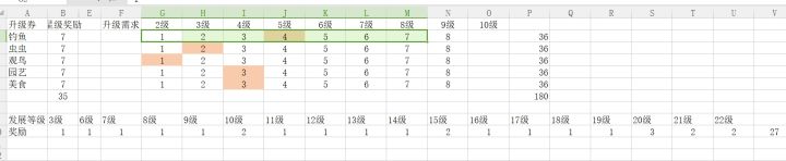 升到10级,每个需要65张,目前我刚玩4天,最高升到6级钓鱼,后面我是推测。