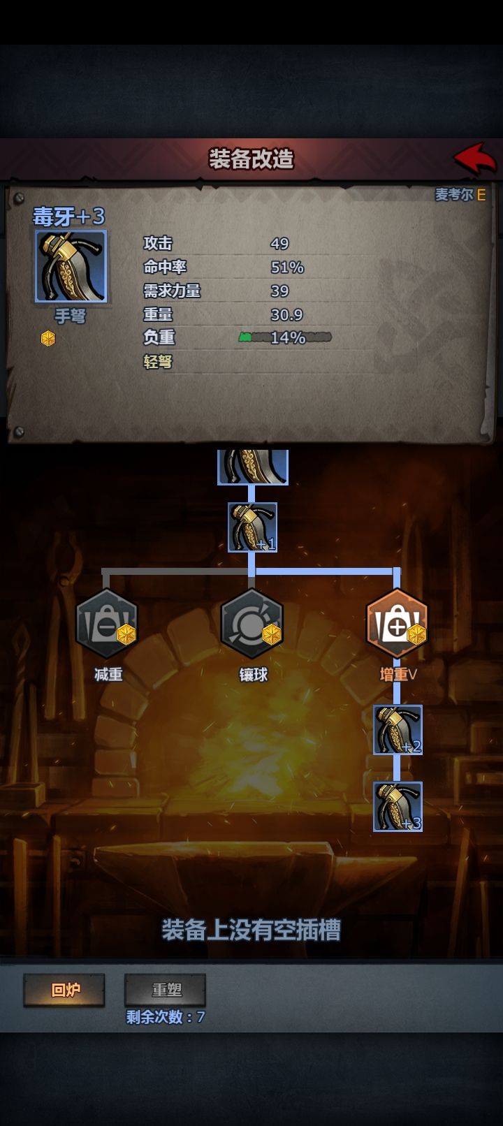武器改增重,千万别用连击弩,如果有神器弩就上神器弩(打4太舒服了)