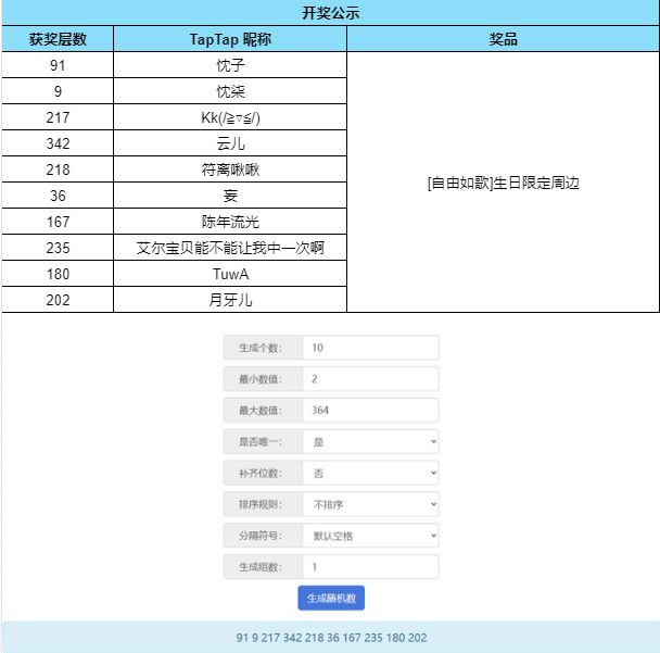 根据开奖结果显示,恭喜以下幸运的玩家们获得奖品: