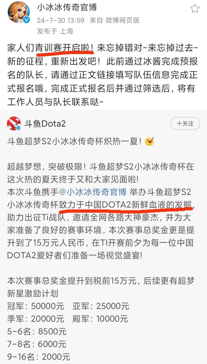 《小冰冰传奇》出资赞助 DOTA2青训赛❗❗❗