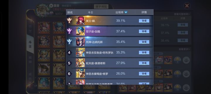 然后进去后左面的栏目选择斗士,然后在右上角的斗士榜单选择完整榜单,就能看到所有卡在银河里的出场率,这能一定程度的反映哪些卡在pvp里比较热能和强势。